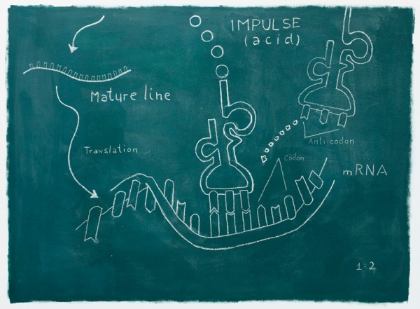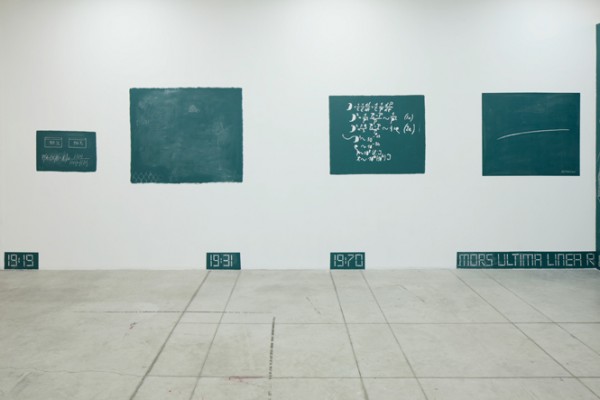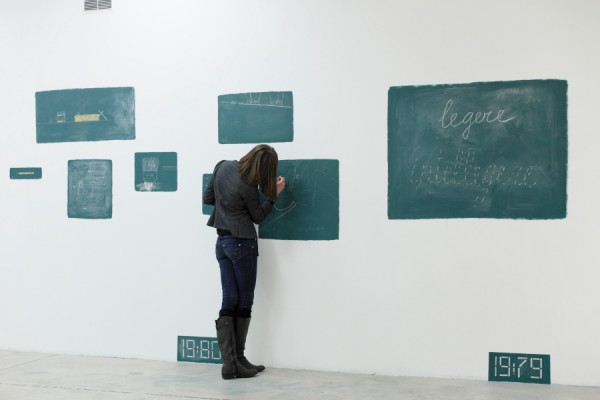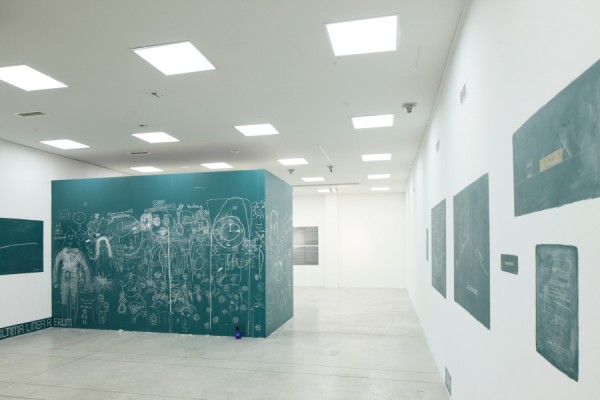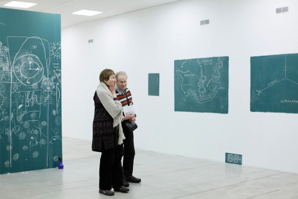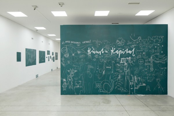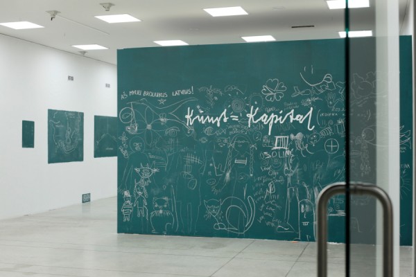As she thought about a loss of illusions in terms of art, the world and herself, the young artist Liena Bondare began to focus on mathematics. She took two quantities and compared them as if she were in school. That’s where she came up with the title for her exhibition: KUNST > EVERYDAY NOTHING. In other words, art is greater than the nothing of one’s daily experience. Is this instructive or provocative? The installation will feature green blackboards with chalk texts and drawings.