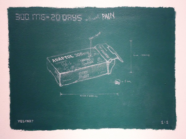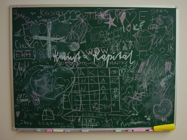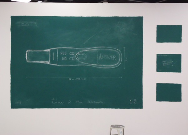 Instalācijas kopskats, krīta zīmējumi uz tāfeles, 300 x 500 cm, Rīgas Mākslas telpa, 2011.